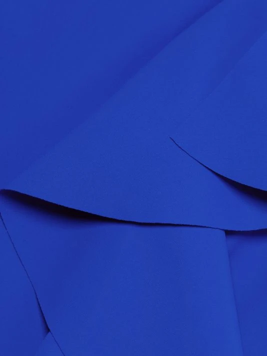This fitted midi-length dress bursts with ruffles that cascade down to the hem opposite of a sharp asymmetric neck.