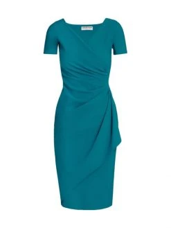 ONLY AT SAKS. This formfitting wrap-style dress features soft pleating at the waist.