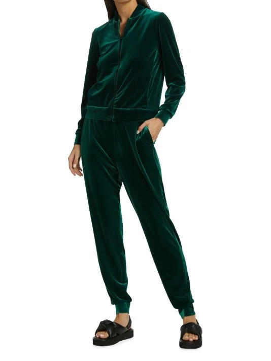 Relaxed fit joggers made from luxe velvet with contrast banded trim.