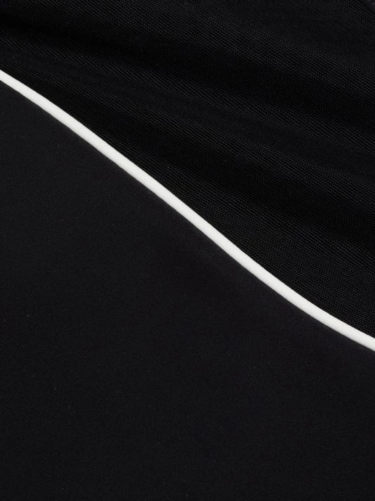 ONLY AT SAKS. An illusion neckline tops this streamlined cocktail dress, designed with contrast piping to highlight the silhouette.
