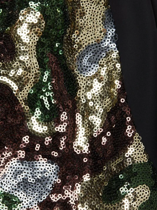 ONLY AT SAKS. The Merlina gown from Chiara Boni La Petite Robe is embellished with shimmering camo-motif sequins. Contrast side panels and an architectural sweetheart neckline complete this fitted style.