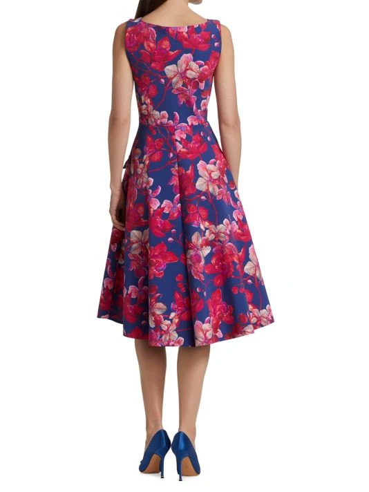 ONLY AT SAKS. Classically refined and feminine, this midi dress flaunts a graphic floral design and a fit-and-flare silhouette.